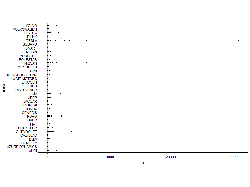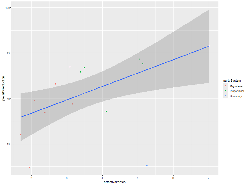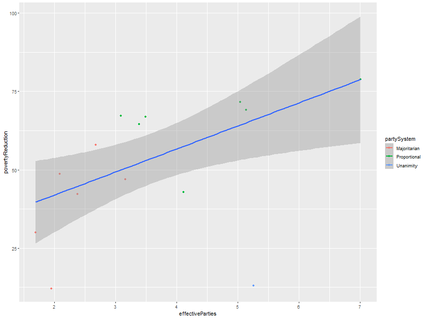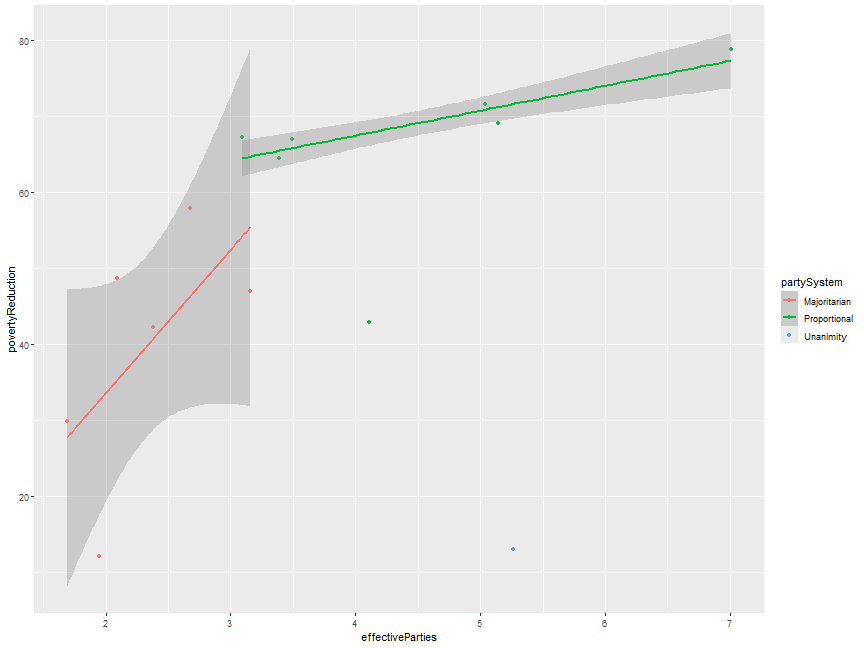 class: center, middle, inverse, title-slide .title[ # CS&SS 569 Visualizing Data and Models ] .subtitle[ ## Lab 3: ggplot2 ] .author[ ### Ramses Llobet ] .institute[ ### Department of Political Science, UW ] .date[ ### 2026-01-20 ] --- ## Introduction - Unpack the design philosophy and inner working of ggplot2 -- - Gain finer control over *each and every* aspect of the graphic design, rather than relying on default -- - Showcase some tricks and useful functions common in my own viz workflow -- - Hopefully it benefits beginners, and intermediate (at least marginally), users to ggplot2 --- ## ggplot2 design philosophy - Grammar of graphics -- - A statistical graphic is a `mapping` of `data` variables to `aes`thetic attributes of `geom`etric objects. (Wilkinson 2005) -- - *What* data do you want to visualize? -- - `ggplot(data = ...)` -- - *How* are variables mapped to specific aesthetic attributes? -- - `aes(... = ...)` -- - positions (`x`, `y`), `shape`, `colour`, `size`, `fill`, `alpha`, `linetype`, `label`... -- - If the value of an attribute do not vary w.r.t. some variable, don't wrap it within `aes(...)` -- - *Which* geometric shapes do you use to represent the data? -- - `geom_{...}`: `geom_point`, `geom_line`, `geom_ribbon`, `geom_polygon`... --- ## ggplot2: A layered grammar - ggplot2: A *layered* grammar of graphics (Wickham 2009) -- - Build a graphic from multiple layers; each consists of some geometric objects or transformation -- - Use `+` to stack up layers -- - When you declare `ggplot(data = ..., aes(...))`, you're declaring the default specification -- - Within each `geom_{}` layer that follows, two things are *inherited* from the default specification at the master level -- - Data: inherited from the default data you supply -- - Aesthetics: inherited from the default aesthetics (`inherit.aes = TRUE`) -- - They are convenient but can create unintended consequences -- - We will learn how to overwrite this property for extra flexibility --- ## Quick demo: inherit.aes = TRUE property ``` r library(tidyverse) iver_data <- read_csv("https://faculty.washington.edu/cadolph/vis/iverRevised.csv") head(iver_data) ``` ``` # A tibble: 6 × 4 country povertyReduction effectiveParties partySystem <chr> <dbl> <dbl> <chr> 1 Australia 42.2 2.38 Majoritarian 2 Belgium 78.8 7.01 Proportional 3 Canada 29.9 1.69 Majoritarian 4 Denmark 71.5 5.04 Proportional 5 Finland 69.1 5.14 Proportional 6 France 57.9 2.68 Majoritarian ``` --- count: false ## Why are there multiple smooth curves? -- inherit.aes .panel1-iver1-non_seq[ ``` r iver_data |> ggplot(aes(x = effectiveParties, y = povertyReduction, color = partySystem)) + geom_point( ) + geom_smooth( method = MASS::rlm ) ``` ] .panel2-iver1-non_seq[ <!-- --> ] --- count: false ## Why are there multiple smooth curves? -- inherit.aes .panel1-iver1-non_seq[ ``` r iver_data |> ggplot(aes(x = effectiveParties, y = povertyReduction, color = partySystem)) + geom_point( * inherit.aes = TRUE, * aes(x = effectiveParties, * y = povertyReduction, * color = partySystem) ) + geom_smooth( method = MASS::rlm ) ``` ] .panel2-iver1-non_seq[ <!-- --> ] --- count: false ## Why are there multiple smooth curves? -- inherit.aes .panel1-iver1-non_seq[ ``` r iver_data |> ggplot(aes(x = effectiveParties, y = povertyReduction, color = partySystem)) + geom_point( inherit.aes = TRUE, aes(x = effectiveParties, y = povertyReduction, color = partySystem) ) + geom_smooth( * inherit.aes = TRUE, * aes(x = effectiveParties, * y = povertyReduction, * color = partySystem), method = MASS::rlm ) ``` ] .panel2-iver1-non_seq[ <!-- --> ] <style> .panel1-iver1-non_seq { color: black; width: 38.6060606060606%; hight: 32%; float: left; padding-left: 1%; font-size: 80% } .panel2-iver1-non_seq { color: black; width: 59.3939393939394%; hight: 32%; float: left; padding-left: 1%; font-size: 80% } .panel3-iver1-non_seq { color: black; width: NA%; hight: 33%; float: left; padding-left: 1%; font-size: 80% } </style> --- count: false ## You can either overwrite the geom_smooth() layer .panel1-iver2-non_seq[ ``` r iver_data |> ggplot(aes(x = effectiveParties, y = povertyReduction, color = partySystem)) + geom_point() + geom_smooth( method = MASS::rlm ) ``` ] .panel2-iver2-non_seq[ <!-- --> ] --- count: false ## You can either overwrite the geom_smooth() layer .panel1-iver2-non_seq[ ``` r iver_data |> ggplot(aes(x = effectiveParties, y = povertyReduction, color = partySystem)) + geom_point() + geom_smooth( * aes(group = 1), method = MASS::rlm ) ``` ] .panel2-iver2-non_seq[ <!-- --> ] <style> .panel1-iver2-non_seq { color: black; width: 38.6060606060606%; hight: 32%; float: left; padding-left: 1%; font-size: 80% } .panel2-iver2-non_seq { color: black; width: 59.3939393939394%; hight: 32%; float: left; padding-left: 1%; font-size: 80% } .panel3-iver2-non_seq { color: black; width: NA%; hight: 33%; float: left; padding-left: 1%; font-size: 80% } </style> --- count: false ## Or localize color aesthetics to the geom_point layer() .panel1-iver3-non_seq[ ``` r iver_data |> ggplot(aes(x = effectiveParties, y = povertyReduction)) + geom_point( ) + geom_smooth( method = MASS::rlm ) ``` ] .panel2-iver3-non_seq[ <!-- --> ] --- count: false ## Or localize color aesthetics to the geom_point layer() .panel1-iver3-non_seq[ ``` r iver_data |> ggplot(aes(x = effectiveParties, y = povertyReduction)) + geom_point( * aes(color = partySystem) ) + geom_smooth( method = MASS::rlm ) ``` ] .panel2-iver3-non_seq[ <!-- --> ] <style> .panel1-iver3-non_seq { color: black; width: 38.6060606060606%; hight: 32%; float: left; padding-left: 1%; font-size: 80% } .panel2-iver3-non_seq { color: black; width: 59.3939393939394%; hight: 32%; float: left; padding-left: 1%; font-size: 80% } .panel3-iver3-non_seq { color: black; width: NA%; hight: 33%; float: left; padding-left: 1%; font-size: 80% } </style> --- ## A segue to a customized ggplot2 theme - Chris and Brian Leung wrote a customized ggplot2 theme to implement a minimalist aesthetics -- -